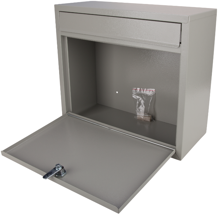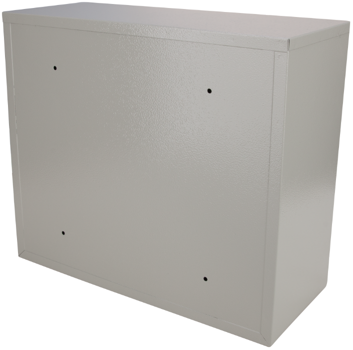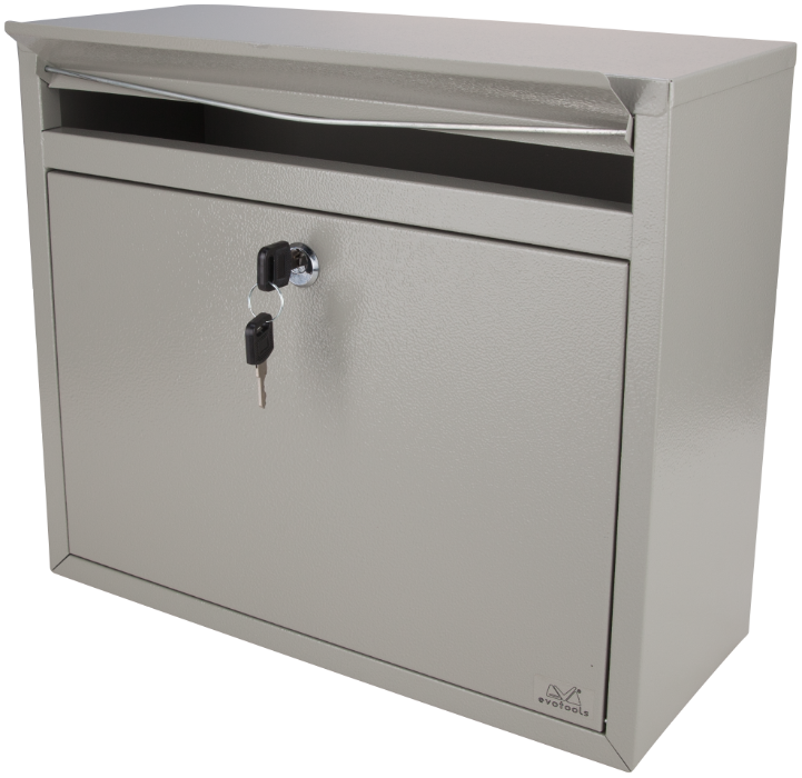 Levél­szekrény, porszórt szürke acéllemezből, beltéri használatra. Felszereltség: